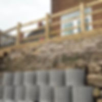 When excavating and levelling for the deck there was a requirement to dig down a meter to install the posts for the handrails, this unearthed two patio areas, one of which was about two feet down together with chain link fence that had been used in an attempt to retain the ground. Once you start excavating you never know what you are going to find. And as spring didn’t seem to want to spring it was very wet and muddy working too. We were able to reduce the waste removal from site bill by placing lots of the spare soil under the decked area, after all no one wants to pay for several skips when one will do.